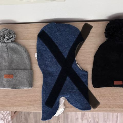 Ylin vas.oikealle: h&m viininpunainen tupsullinen pipo, jossa on nauhat. Koko 98/104.