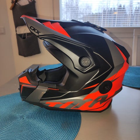 Muutaman kerran kelkkailussa käytetty kypärä.