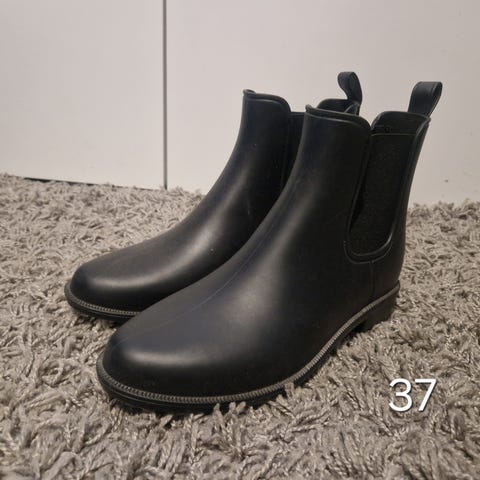 Myydään kumisaappaita. Ne ovat kumia, jossa on lämmin Upotus. En tiedä tarkalleen lämpimän kielekkeen materiaalia, mutta se tuntuu Villalta. Saappaisiin on kirjoitettu kokoa 37, mutta sanoisin, että se sopii paremmin kokoon 36