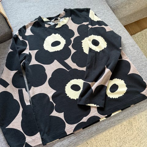 Marimekon Värssy Unikko kauluspaita, koko 36. Kupro ja viskoosi. Hyvä kunto, käytetty, pesty hajusteettomalla pesuaineella. Tupakoimaton ja lemmikkieläimetön koti. Silitys jää ostajalle.