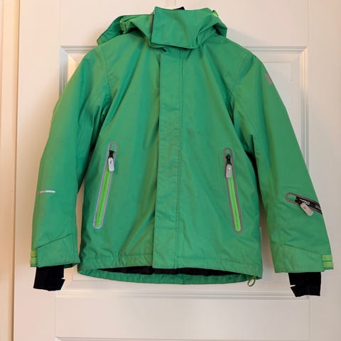 Reima lasten takki, koko 134, väri vihreä, unisex-malli. Takissa on vetoketjukiinnitys, huppu ja kaksi etutaskua. Materiaali on kevyt ja sopii ulkokäyttöön.