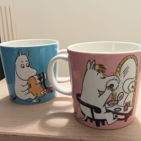 Erittäin hyväkuntoiset vanhat tuotannosta poistuneet muumimukit ilman tarroja: