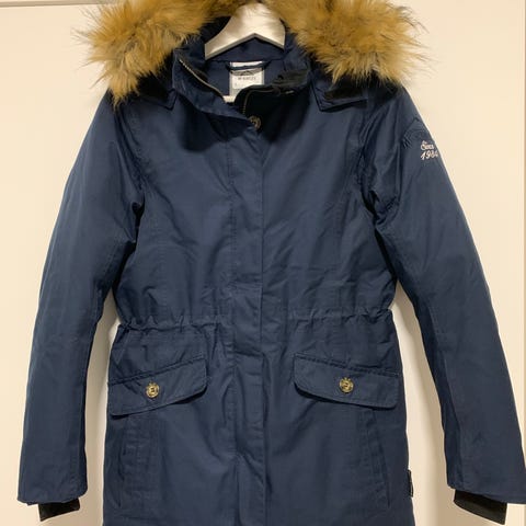 Sininen, oranssi sisus, vetoketjulla ja tarrat ylänappi, taskuja