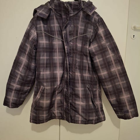 Mustapohjaonen, punakirjava Desigual takki, koko 158 cm / 13-14v. Kapea malli. Vetoketjut toimii, vyön solki vähän kulunut