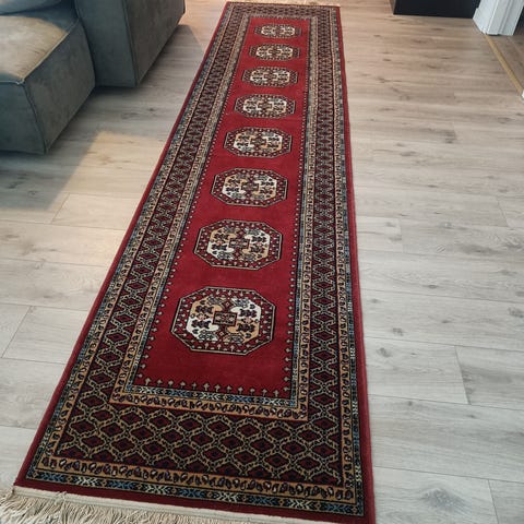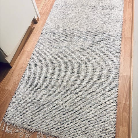 Paksuhkoa tukeva matto. Trikoo ja räsykudetta