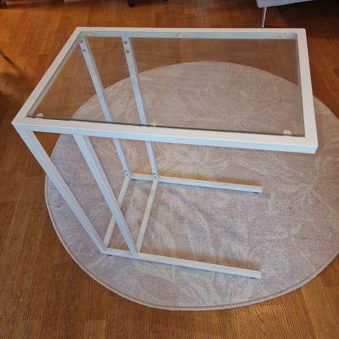IKEA Hans J Wegner lasipintainen sivupöytä, jossa musta metallirunko. Pöytä soveltuu olohuoneeseen tai muuhun tilaan lisätilaksi tai koriste-esineiden sijoittamiseen. Lasinen pöytälevy tarjoaa kestävän ja helppohoitoisen pinnan.