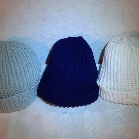 Käsinkudottu merinovilla-/puuvillapipo. Ei kiristä eikä kutita.