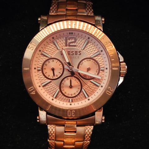 Versus Versace miesten rannekello. Kellossa on teräsranneke ja hopeanvärinen runko. Kellon design on suunniteltu miehille ja se sisältää useita näyttöjä ajan seuraamiseen.