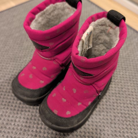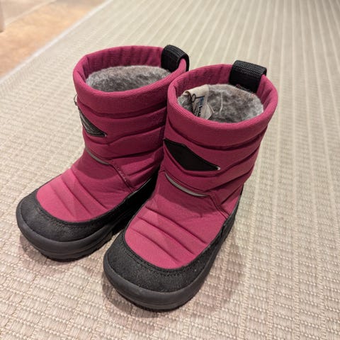 Myydään Kuoman talvikengät koossa 22. Kenkiä käytetty paljon, mutta vielä yleisilmeentään siistit. Vuoressa tavanomaista kulumaa. Tarkkaan syynäten näkee ulkosaumassa mustalla alueella tuplaneuloksessa paikoin katkosta toisessa neuloksesta, mutta sauma ei irvistä.