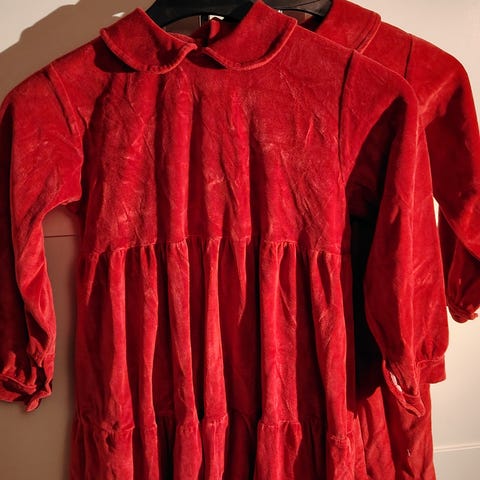 Viininpunainen ihana velourmekko jouluun. Kaupan päälle porolegginsit. Legginseissä karvavuori. Legginssien haarovälissä ommel ehkä hieman löystynyt, helposti voi vahvistaa ompeleen. Muuten ehjä, siisti setti. Koiratalous.