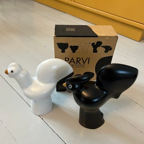 Howard Smithin 1990-luvulla Arabialle suunnitteleman Parvi-sarjan valkoinen Kaisa-tukaani. Pohjassa vähän käytön jälkiä ja toisen silmän lähellä hentoja naarmuja (kts. lähikuva). Materiaali: Kova fajanssi Väri: Valkoinen Korkeus: 28 cm.