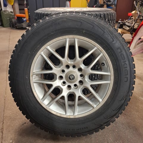 myynnissä itselle tarpeettomat 17 tuumaset nastapyörät , kumeissa pintaa noin 5-5,5mm , näähän vaatii omat pyöränmutterit (motonet a'4.99/kpl) joita mukana 20kpl , vanteissa korroosiota , mutta suorat , vaihdossa kelpuutan 16 tuumaset , hyvät nastakumit, ilman vanteita mieluummin 215 60 tai 225 60.