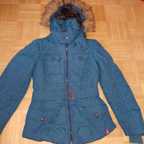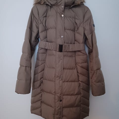 Esprit toppatakki, lämmin ja kosteuden kestävä. Vyötäröllä mahdollisuus kiristämiseen. Lämmin beigen sävy .