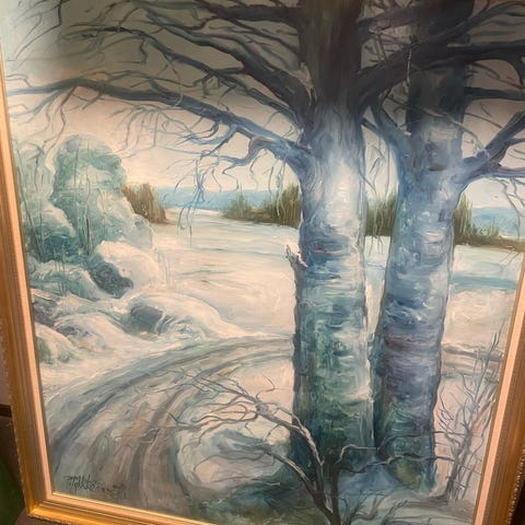 Samppa Niemisen taulu: "Utuinen talvimaisema". Taulun mitat: 44 x 44cm. (Nouto tai postituskulut lisätään hintaan).