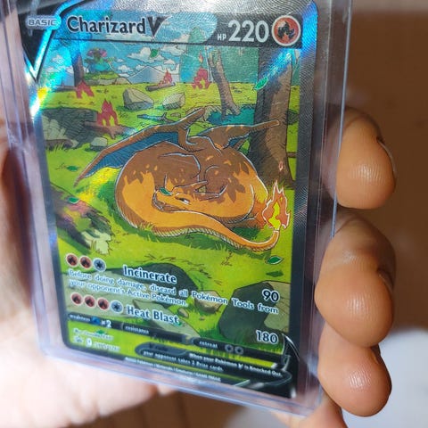Myynnissä (NM) Pokémon Charizard VSTAR swsh262 keräilykortti. Sleevattu heti boosterien avaamisen jälkeen.