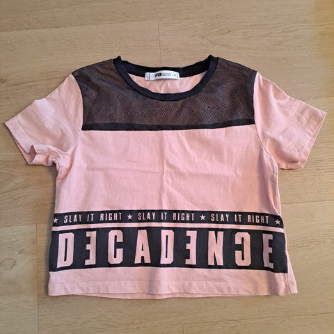 Käytetty, mutta vielä käyttökelpoinen t-paita. Lyhyt malli