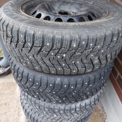 Vajaan talven ajettu. Vaihdettu autoa ja jäivät itselle. Nordman renkaat aluvanteilla, koko 195/65 / 15