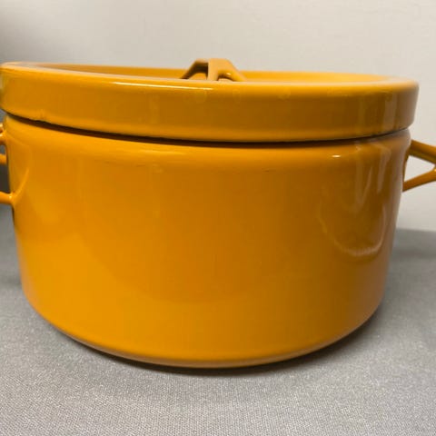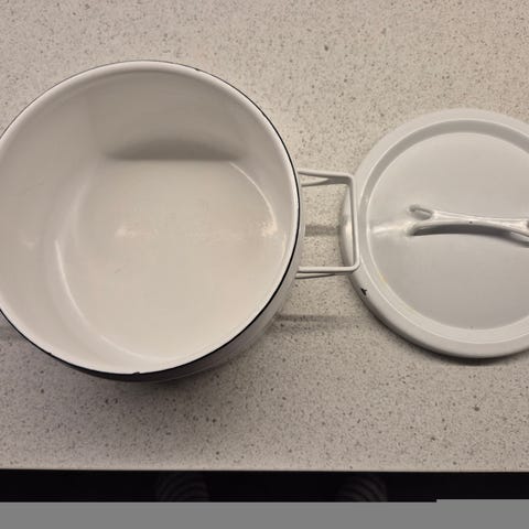 Finel emaloitu kattila, väri punainen, sisäpinta harmaa emali.Materiaali kestävää emaloitua metallia. Emalointi suht ehjä, mutta ei uudenveroinen. Pohjassa leima finel. Kork. 20 cm, halk. 25 cm. Kansi uupuu. Vain nouto Parkanosta.