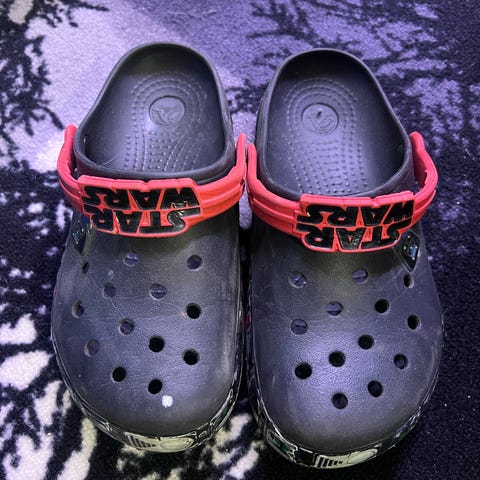 Crocs Star Wars lasten sandaalit, koko 35, oranssi väri, unisex. Valmistettu kevyestä ja kestävästä materiaalista, jossa rei'itetty päälliosa ja säädettävä kantaremmi. Soveltuvat lasten vapaa-ajan ja ulkokäyttöön.