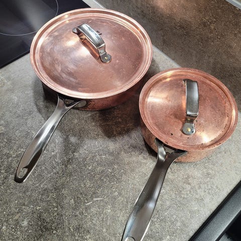 Harri Koskisen Iittala/Hackman kupari/teräs keittokulhot 2kpl, 40e/kpl. Kuparinkiillotusaineet kaupanpäälle. Käytetty vähän, nyt olleet käyttämättä vuosia.