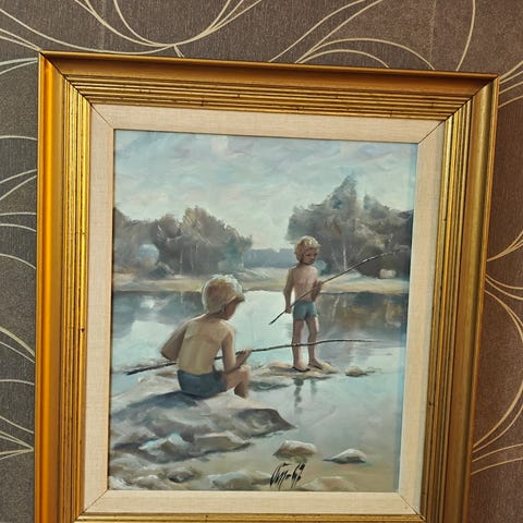 Koko kehyksineen 48,5 x 49 cm. Kehyksessä pieni moite (kuva).