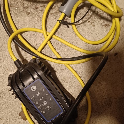 Kuvan mukainen huonosti toimiva sähköauton laturi. Ei suostu useimmiten lataamaan omaa Audi A3:stani vaan vilkuttaa oikosulkua, vaikka toinen laturini toimii.