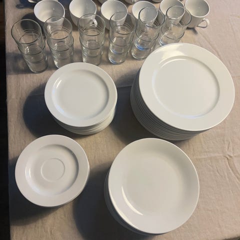 Kaunis musta-valkoinen astiasto. Settiin kuuluu 8lautasta,sopii sekä matalaksi että keittolautaseksi,4kakkulautasta,7kahvikuppi+aluslautaset,kermakko,sokerikko,teekannu,kastikekannu,2vatia ja 1 syvempi kulho esim.salaattikulhoksi. Kaikki hyvässä kunnossa.