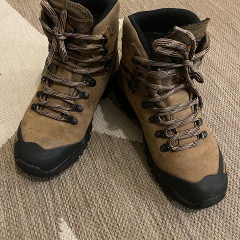 Meindl air active goretex-vaelluskengät. Kokomerkintä 6, käytetty 38 jalassa. Kärjissä kulumaa.
