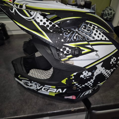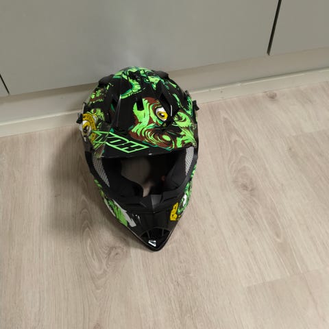 Muutaman kerran käytetty crossi kypärä. Väri ei sopinutkaan. Koko L.