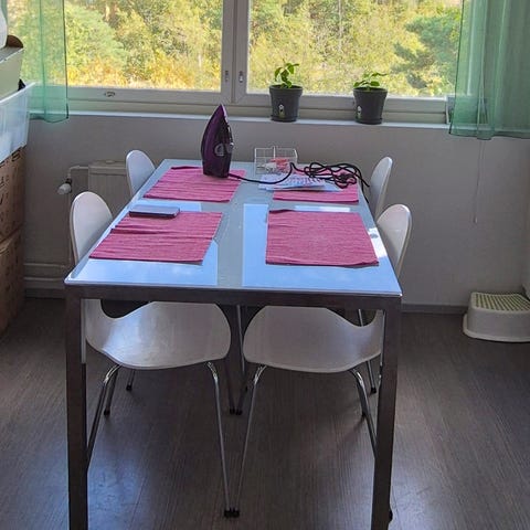 Tämä ruokapöytä kuudelle henkilölle (170x90). Voit ostaa pelkän lasilevyn tai koko pöydän.
