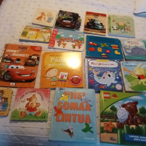 Paketissa 8 hyväkuntoista värikästä kirjaa, joista kahdessa painettavia ääninappeja (toiseen vaihdettava uusi paristo), kahdessa siirrettäviä magneettikuvaus ja yhdessä liikuteltavia vipuja.