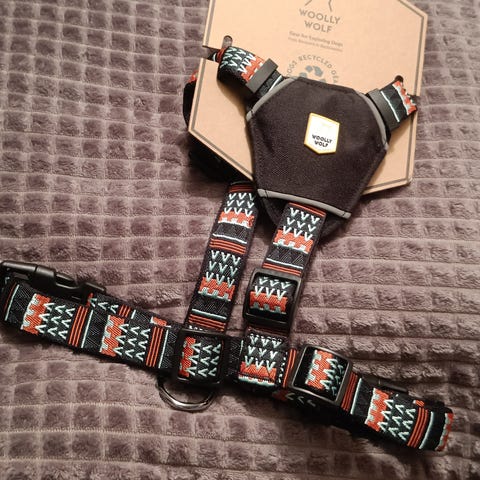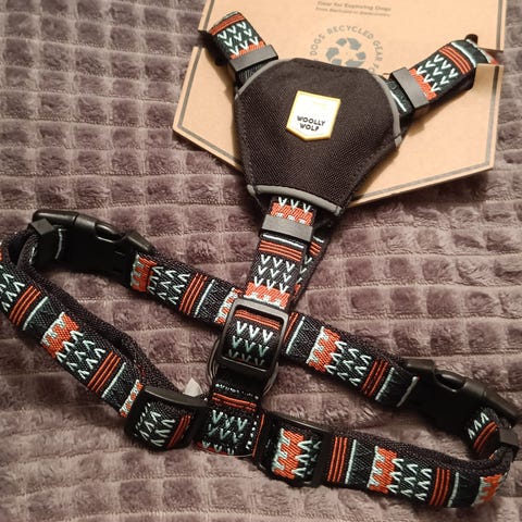 Kuten kaikki muutkin Woolly Wolf -tuotteet, valjaat on valmistettu kierrätetyistä PET-pulloista.