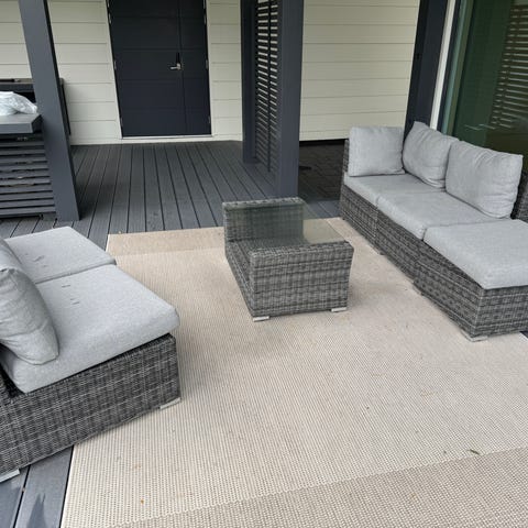 Myydään polyrottinki ulkokalusteryhmä. Nojatuolien käsinojat kärsineet, näistä lisäkuvat. Itse olen nämä peittänyt vilteillä niin ei ole haitanneet. Istuinosien rottingit ehjät. Nojatuoleihin lisäksi kuuluu tyynyt (istuintyyny+selkätyyny), nämä puuttuvat kuvista.
