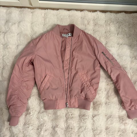 Todella hyväkuntoinen Stay:n ruusunpunainen pilottitakki jossa kevyt untuva. Koko XS.