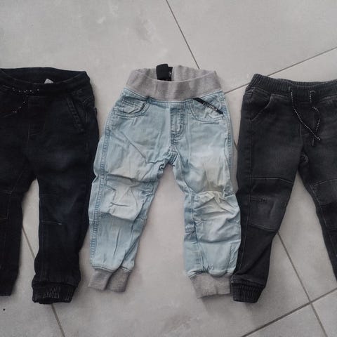 Myydään siistit housut. Polvissa aavistus haalistumaa. Koko 92/98. Säädettävä vyötärö.