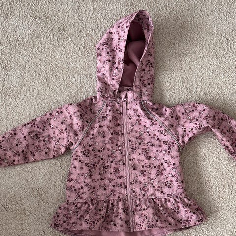 Name it kukkakuvioinen lasten talvitakki, koko 98. Takissa on olkapäillä röyhelöt ja heijastinnauha. Takki on ollut yhdellä lapsella käytössä lähinnä kauppatakkina, joten se on oikein hyvässä kunnossa.