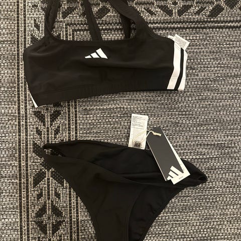 Premoda Uinti bikinit, koko M. Punainen väri, jossa monivärisiä pilkkuja. Materiaali soveltuu uintikäyttöön. Yläosan malli on solmittava kaulasta, alaosassa kiristysnauhat sivuilla.
