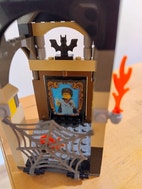 Puuttuu Potterin sauva ja pöllö katolta. Rakennelman toinen etukulmapalkki korvattu muilla muunvärisillä osilla.