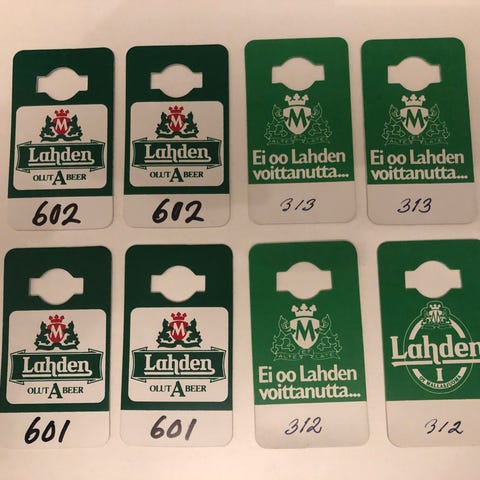 9kpl käyttämättömiä Amiraalin narikkalappuja + 3 kpl Lahden lappuja.