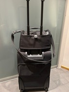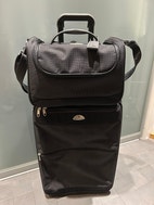 Samsonite matkalaukku, valmistettu kestävästä kankaasta. Väri musta, unisex-malli. Laukussa on useita vetoketjutaskuja ja säädettävä olkahihna. Sisätilat sisältävät kiinnityshihnat tavaroiden pitämiseksi paikallaan. Laukussa on teleskooppikahva ja pyörät helpottamaan liikuttelua.