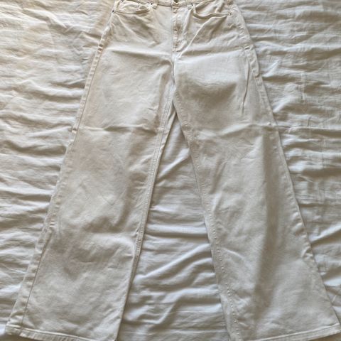 Valkoiset leveälahkeiset tuulihousut S