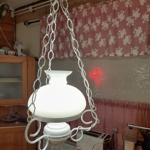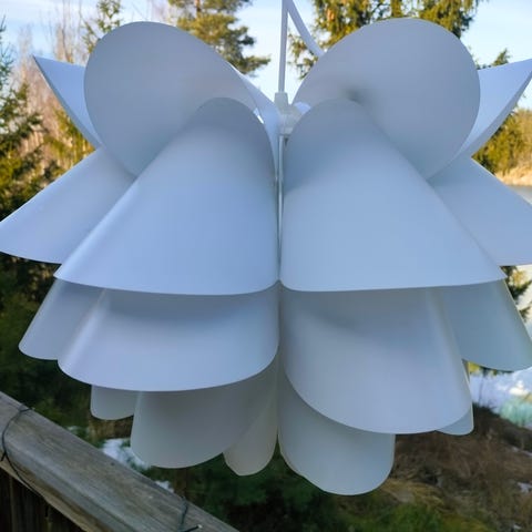 Siisti toimivana pois käytöstä jäänyt valaisin. Halkaisija n. 40cm. Johdon kuvussa tummumaa, lähtenee pois. Yhdessä kohdassa taittunut kohta, ei näy kun jää yläpuolelle.