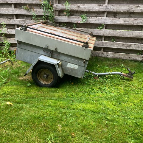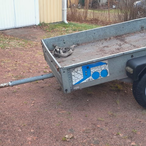Myydään kuomullinen kärry Juhta 750. Etuvaloista toinen Rikki . Lavan pituus 2300. Ei nokkapyörää, ei kippiominaisuuta. Muuten näppärä kärry.
