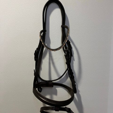 Ruskea nahka, messinki. Pari kertaa käytössä olleet, todella siistissä kunnossa.