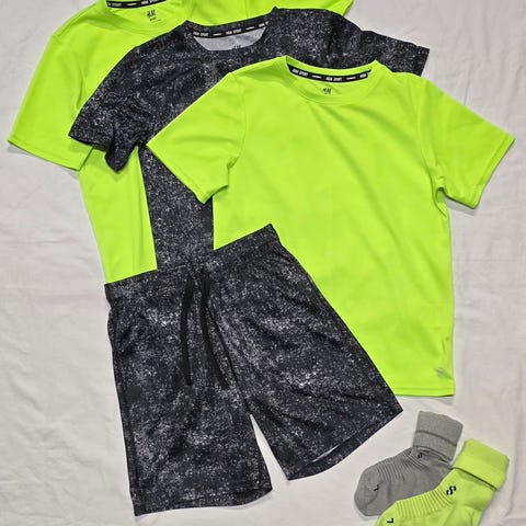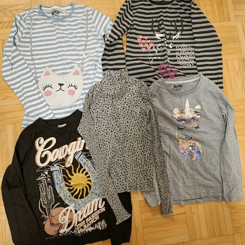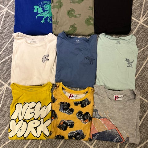 Pieni käyttövaatepaketti pojalle, muutoin päällisin puolin siistejä, mutta kulumisen jälkeä/korjaamisen tarvetta.