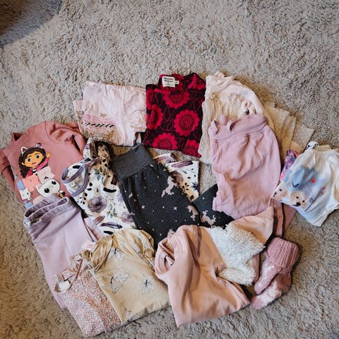 Myydään hyväkuntoinen, ehjä ja siisti vaatepaketti koossa 86/92/98 cm. Vaatteet ovat olleet meillä pitkäikäisiä ja ne on otettu käyttöön lähellä 86 kokoa ja menneet lähes tuonne 98 kokoon saakka. Paketissa on ihanan pehmeät joustocollegepaita ja -housut LillaLumin Salome-jc:stä sekä yhteensopivat ribbilegginsit.