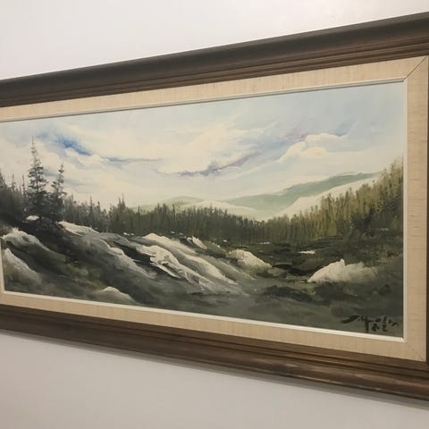 Maisemaöljymaalaus vuodelta 1963, esittää järvimaisemaa veneineen ja mökkeineen. Maalaus on kehystetty ja sopii sisustukseen tai kokoelmiin.