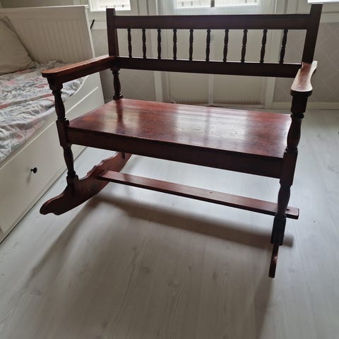 Myydään hyvässä kunnossa oleva puinen keinutuoli (Eimi Kaluste). Vain nouto Jyväskylän Tikkalasta (41860).