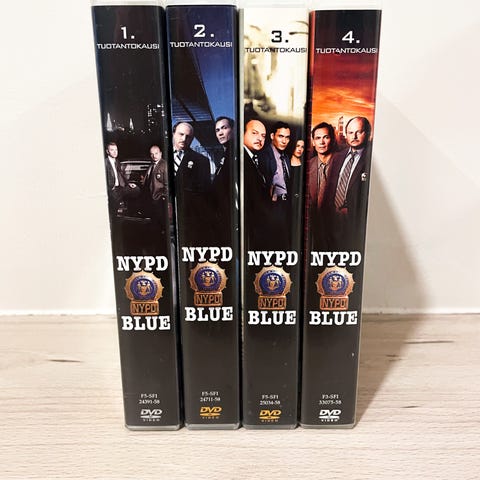 NYPD Blue DVD-sarja sisältää neljä tuotantokautta. Sarja on englanninkielinen poliisidraama, jossa seurataan New Yorkin poliisiosaston toimintaa. Jokainen DVD sisältää useita jaksoja, jotka kuvaavat rikostutkintaa ja poliisityön arkea.