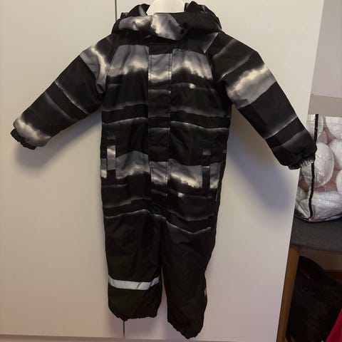 Kevyt polyesterivuori. Kenkälenkkien kaikki napit hyvin paikoillaan, nykyiset kuminauhat jo aika kuluneet ja kannattaisi vaihtaa. Oikean hihan resorissa pieni reikä (ks. kuva).